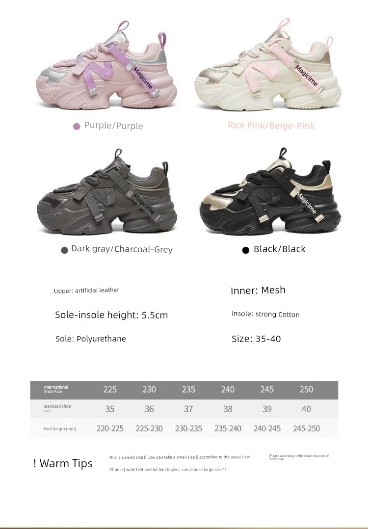 Elevate your footwear fashion effortlessly with our trendy 2025 Pink Platform Dad Shoes designed exclusively for women who cherish both style and comfort. These chic sneakers beautifully merge a sporty dad sneaker silhouette with an extra boost in height, ensuring you feel confident and fashionable all day long. With their delightful pop of pink, these versatile shoes elevate your casual outfits, easily pairing with jeans, skirts, or shorts. Designed for on-the-go lifestyles, they offer all-day comfort and support for your feet, making them perfect for autumn and winter. Crafted from premium materials that ensure durability and longevity, these exclusive shoes are a must-have addition to your collection. Simply slip them on for an instant style upgrade—whether dressing up for a night out or keeping it casual for errands, they deliver a perfect fit for any occasion. Don't miss out—grab your bestselling Pink Platform Dad Shoes today while stocks last!